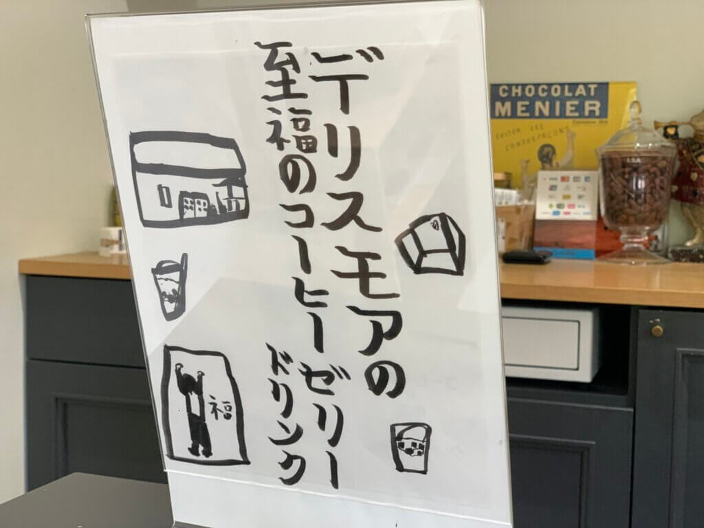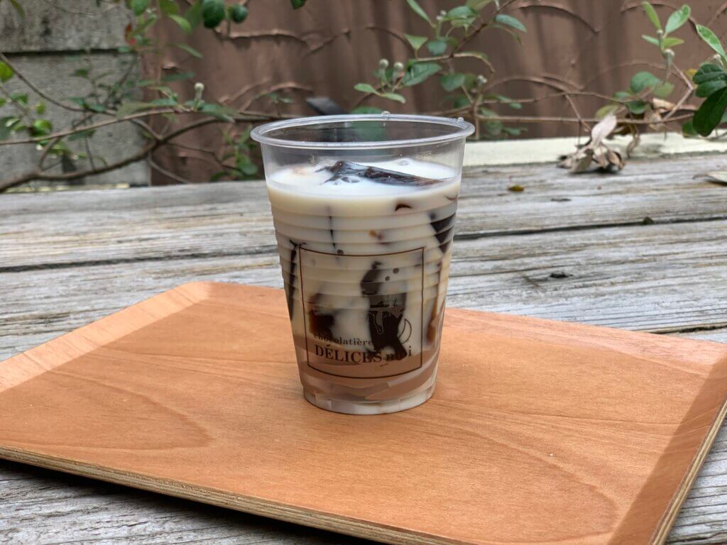 チョコレートの他に、アイスや焼き菓子、ケーキもありますが、おすすめなのが『デリスモアの至福のコーヒーゼリードリンク』です。この商品が出来上がるまでに、何度も家族会議が開かれ、ネーミングは小学生のお嬢さんがされたそうです。