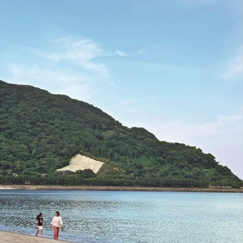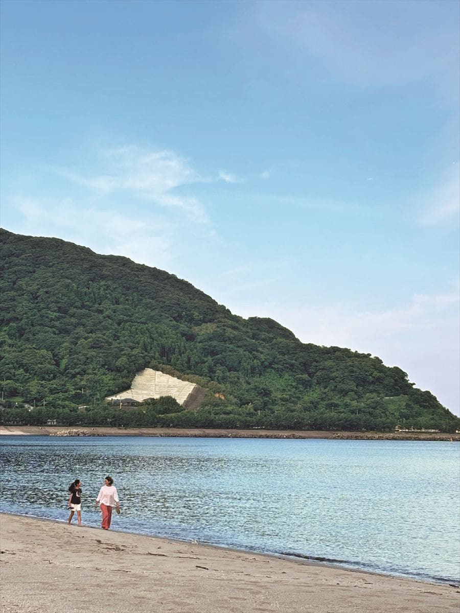 手打海岸は澤さん親子の散歩コース。波の音を聞き、海に触れると心が落ち着くのだそう。
