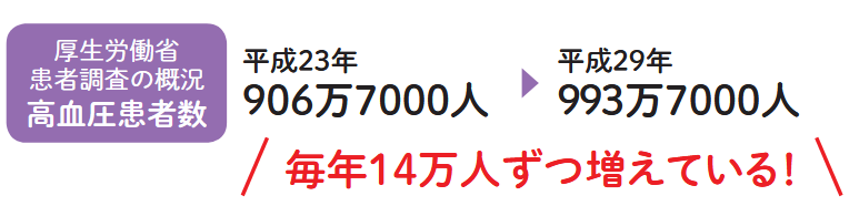 これにより、年齢や体型にかかわらず、基準値を超えたら一律で高血圧とみなされるようになり、一気に高血圧患者は急増。高血圧患者は現在進行形で増え続けています。