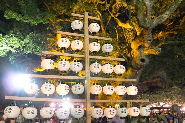 放生会の大きな魅力の1つは、境内やその周辺にずらりと並ぶ約100店もの露店。定番のお祭りグルメを満喫してみてはいかがでしょうか。昼間の賑わいもさることながら、夕暮れ時からは提灯にあかりが灯り、境内が幻想的な雰囲気に包まれます。