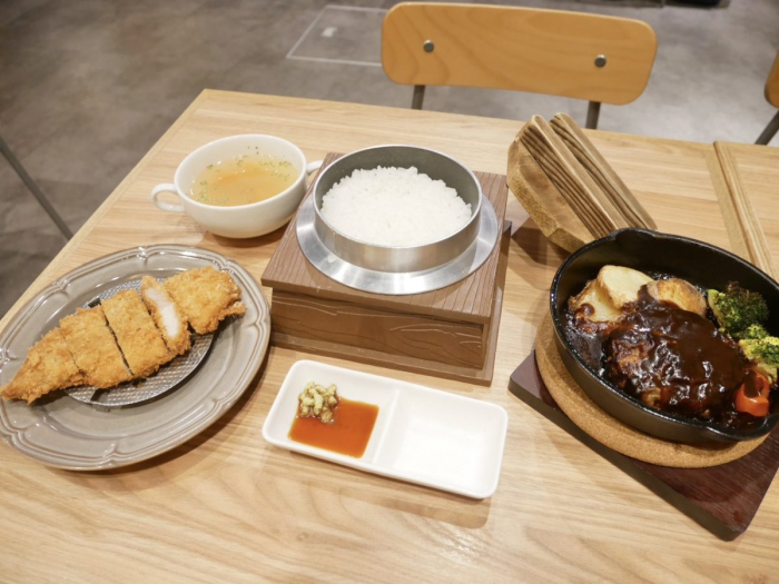 結局どちらも捨てがたく、今回注文したのは「ハンバーグ」と「黒豚ロースかつ」の両方が味わえるセット!まさに欲張りさんのためのメニューです。