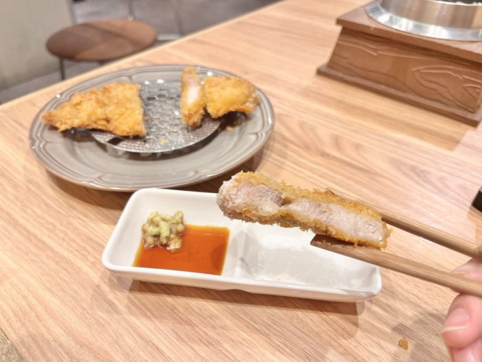 リニューアル後、とんかつには上質な黒豚を採用。ほどよい脂身の甘さとジューシーさが際立ちます。