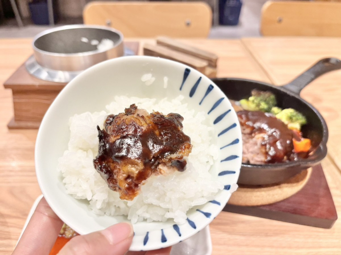 名前の通り、炊き立てご飯とデミグラスソースの組み合わせも堪能。熱々のご飯に濃厚デミグラスが絡み、まさに至福のひと口です。