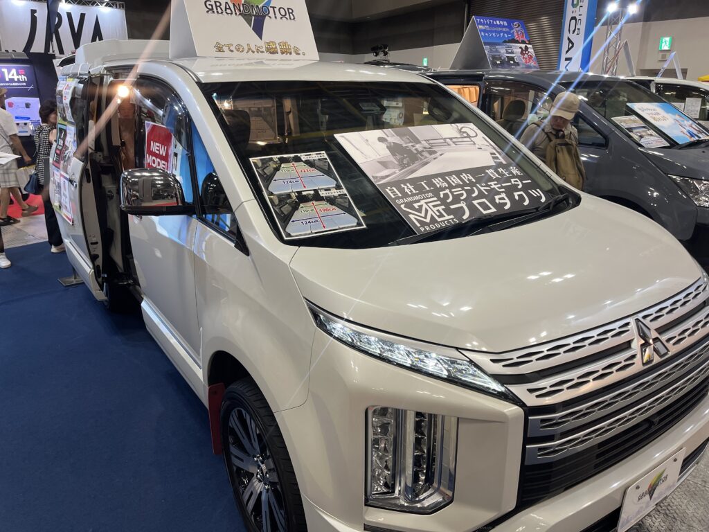 デリカD:5の車中泊キットを販売してきたグランモーターが、車内での快適性を追求した進化版のプロトタイプモデルを展示。サブバッテリー80Ahとインバーター、そして、LEDライトを標準装備として、よりキャンピングカーに近い仕様へと進化しています。