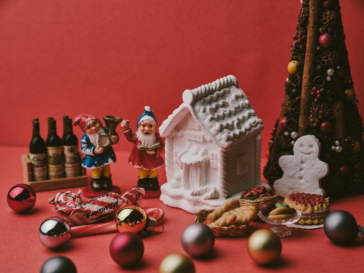 5店舗の物販エリアでは、クリスマス気分を高める雑貨が充実しています。ドイツの老舗【ケーテ・ウォルファルト】をはじめ、麻布台ヒルズの植栽を使った限定ブーケを販売する【SiKiTO】、冬小物がそろう【MAMBO by CLASKA】などが出店します。ギフトセットやラッピングも用意されており、贈り物選びにも最適です。