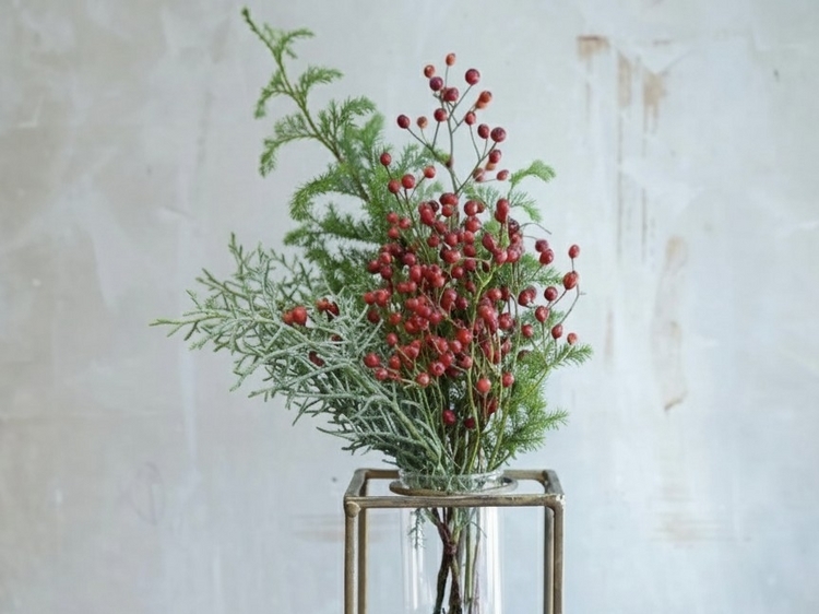 【SiKiTO】が初出店し、天然の枝ものを使ったクリスマスブーケを販売します。麻布台ヒルズの植栽を取り入れた限定ブーケのほか、手作業で仕立てたプリザーブドのリースやツリーも登場。本物の植物がもつ凛とした美しさを楽しめます。