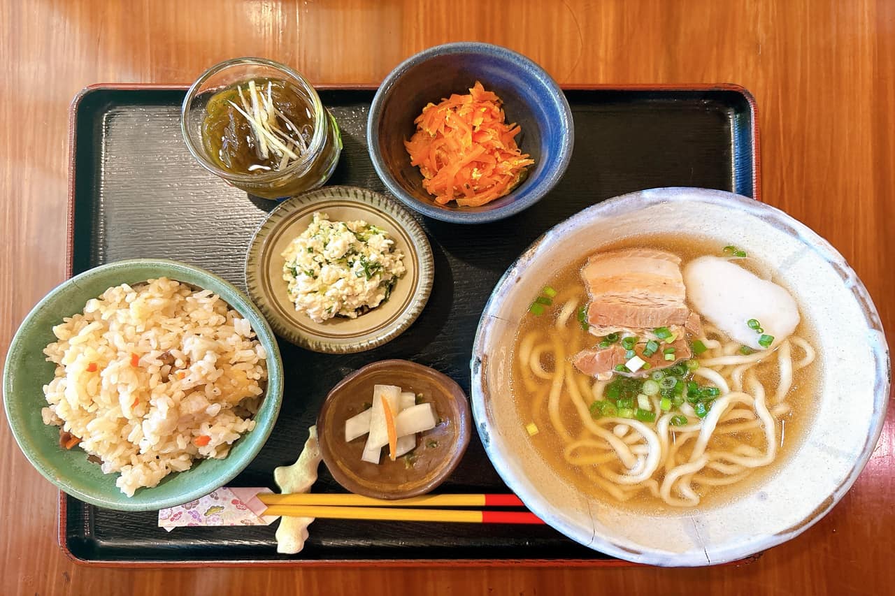 今回私がいただいたのは「三枚肉そばセット・小」(税込1220円)。そばに小鉢3品、漬もの、そしてじゅーしぃ(黒米にも変更可)がついた、大満足のランチタイムでした。 昔ながらの沖縄の味を支えるのは、地元・糸満の誇る老舗の品々。創業100年を超える「西南門小(ニシヘージョーグヮー)かまぼこ屋」のかまぼこや、昭和60年創業の「宇那志(うなし)豆腐店」の豆腐など、名店の味がぎゅっと詰まっています。 一度に沖縄の“いいもの”を味わえる贅沢なセットです!
