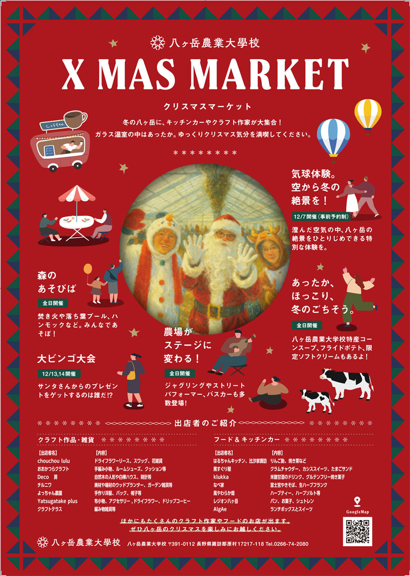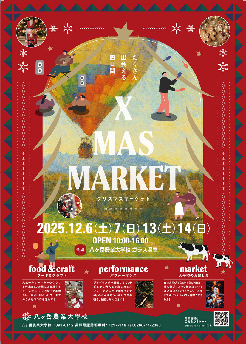 12/6(土)12/7(日)12/13(土)12/14(日)『八ヶ岳農業大学校クリスマスマーケット』4日間で合計約50店が集う冬のマルシェイベントが開催!ステージパフォーマンスや気球体験も@長野県・原村