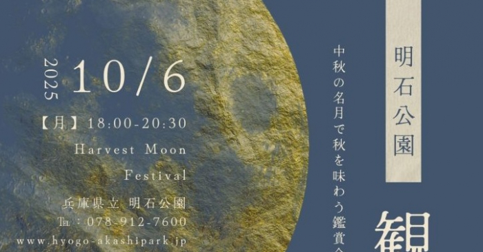 『明石公園』東芝生広場にある武蔵の庭園(明石市)で10月6日、「明石城観月会」は、10月6日が開催されます。入場無料。