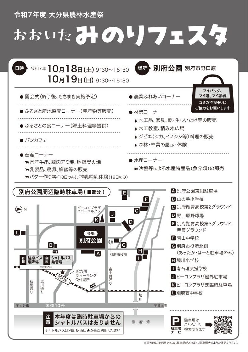 別府公園で『大分県農林水産祭 おおいたみのりフェスタ』が開催されます