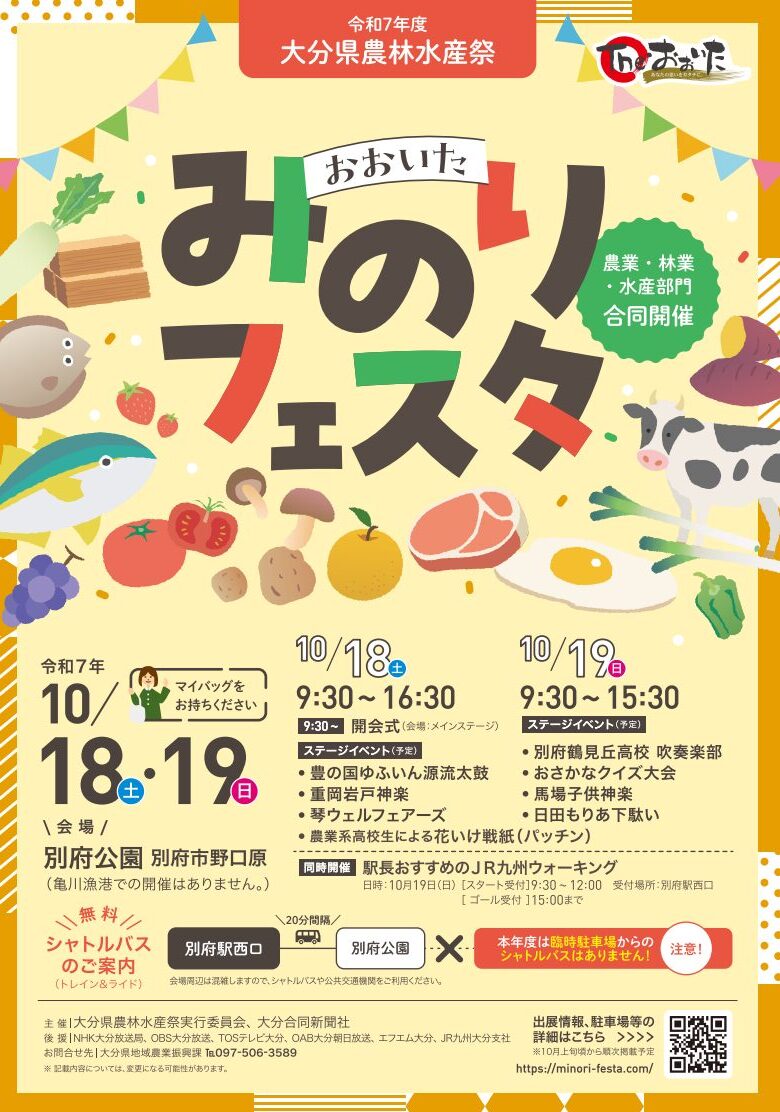 別府公園で『大分県農林水産祭 おおいたみのりフェスタ』が開催されます。