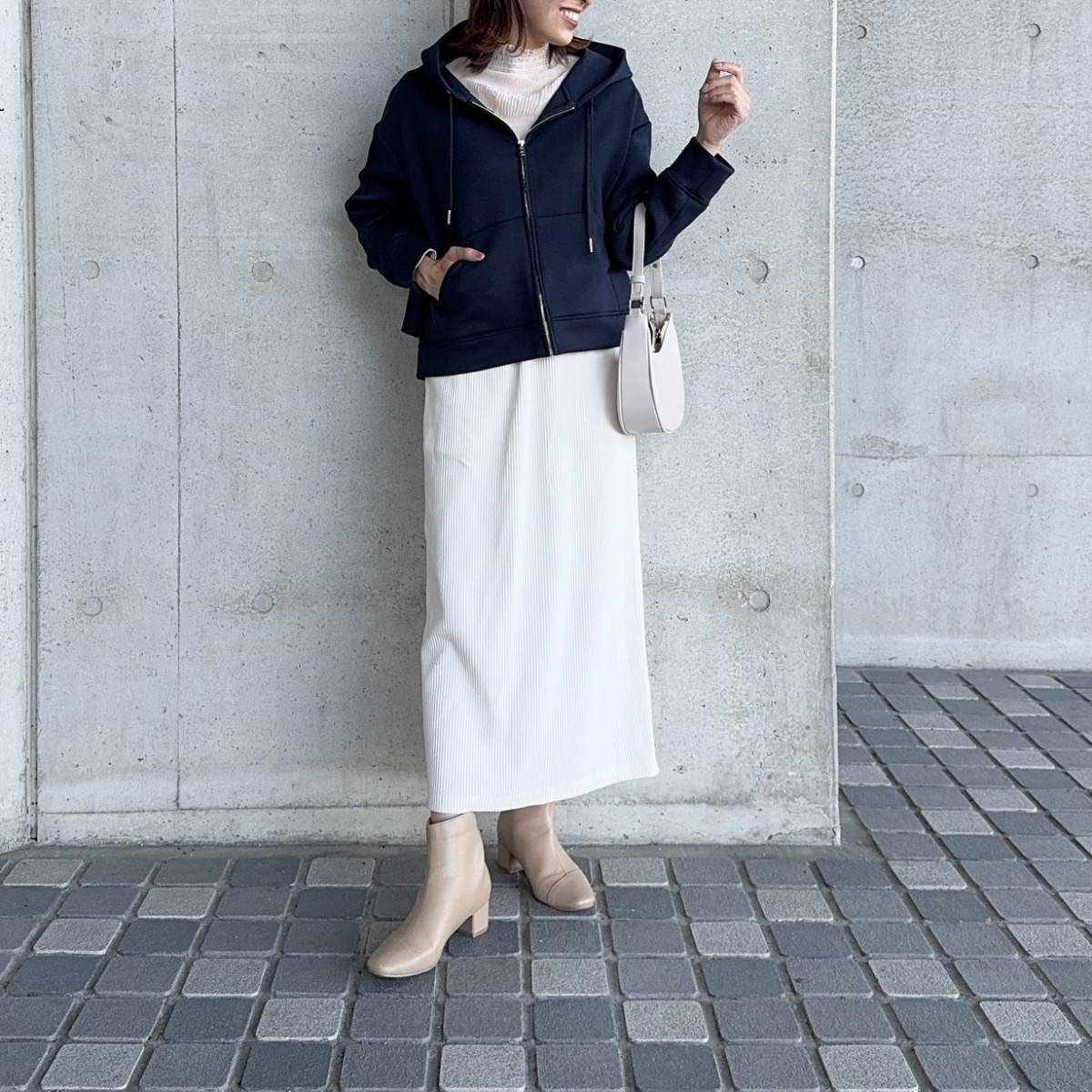 【11月編】ダサ見えしないパーカーコーデ⑤ネイビー×白
