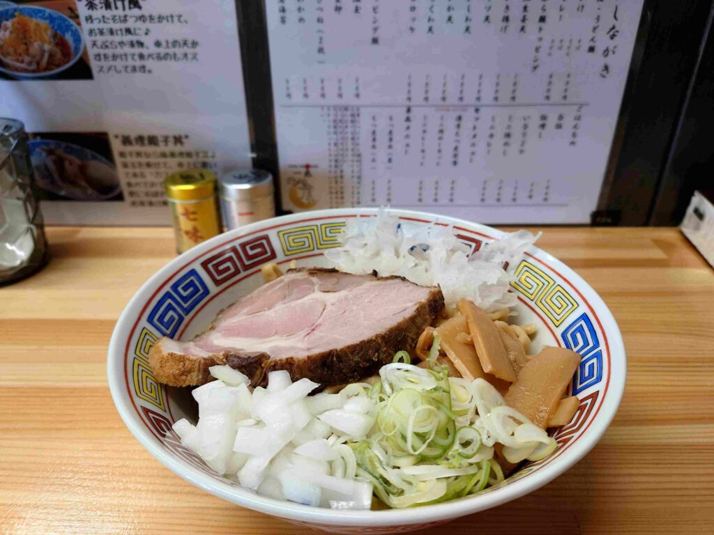 コシのあるワシワシ麺に特製ダレがしっかり絡み、一度食べたらクセになる味わいです。