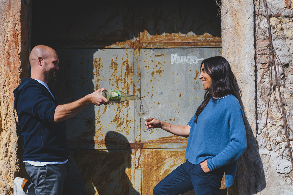 醸造家のアンドレア・モーザーさん(左)と、「チーム・コンビーネ」のPR担当、アンナ・ブランドーニさん。