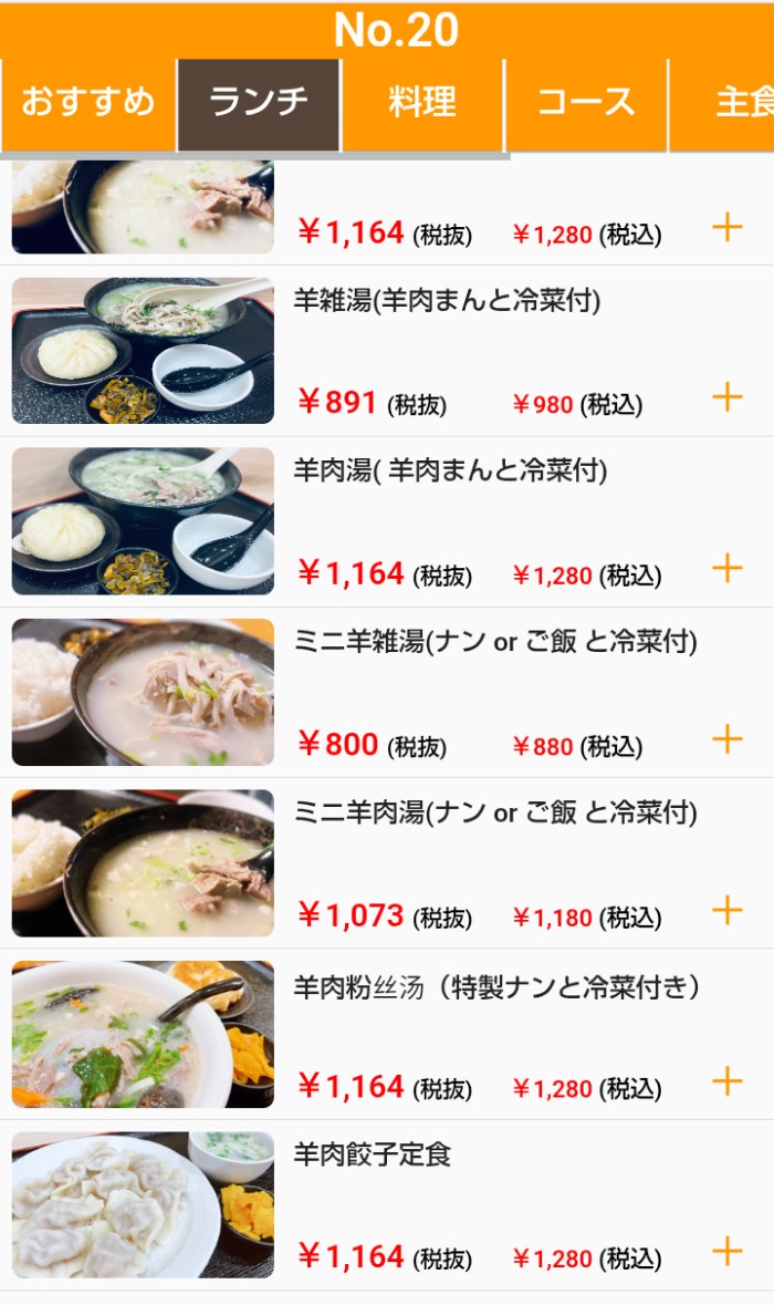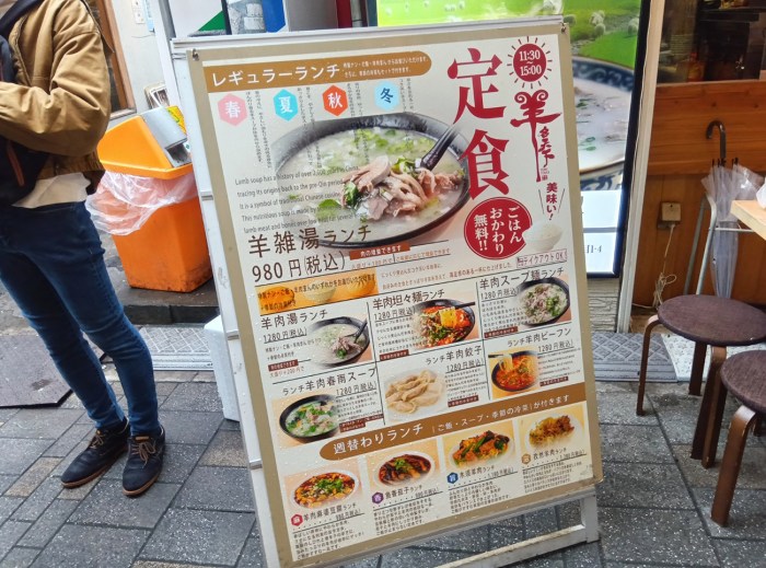料理の馴染みの無さだけでなくスープ推しというのが日本人感覚から言うとピンと来ないところだが、ランチメニューを見ると、「羊肉麻婆豆腐定食(税込980円)」とか「羊肉餃子定食(税込1280円)」とかもある。
