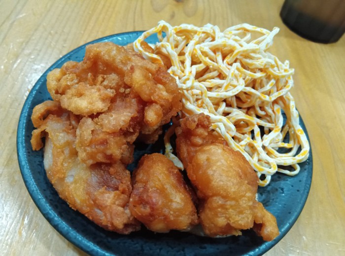 サイドメニューに唐揚げが並んでいるのである! 干し豆腐の千切り和え、漬物、ゆで卵、揚げパンまではまだサイドの食べ放題としてありえるけど、ここに唐揚げが入ってくるパターンってあるの!? なお、唐揚げは羊ではなく鶏もも肉だった。