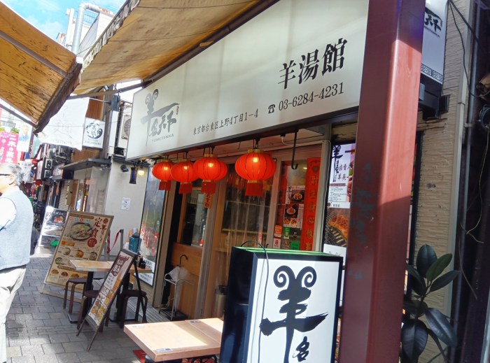 さすがアメ横、さすが中国。色んな意味で日本とは思えないこの店の名は『羊名天下 羊湯館』だ。ランチタイムは11時30分から15時までで土日でもやっている。しかも、羊湯という馴染みのないジャンルのためか、土日でも空いていたので穴場と言えるのではないだろうか。