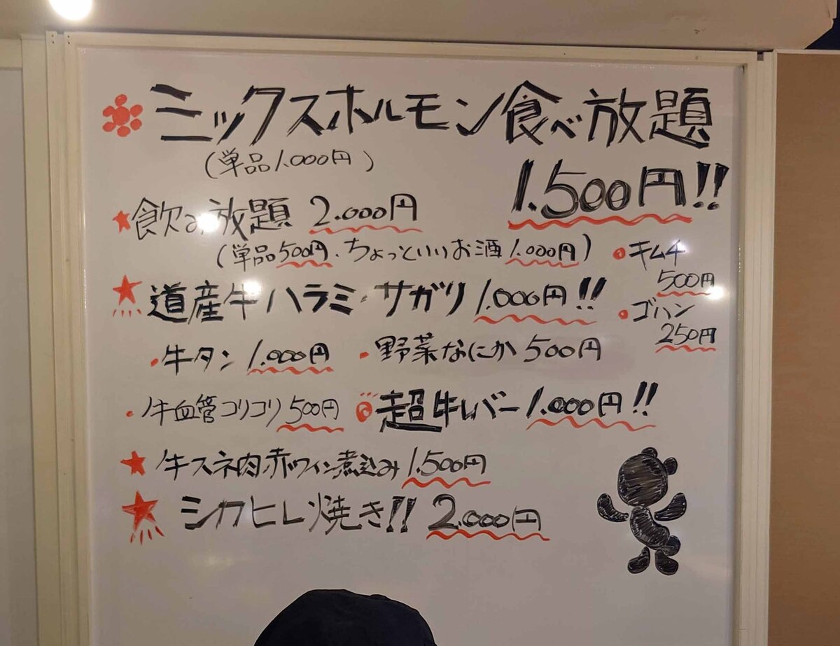ここのウリはなんと言っても「ミックスホルモン食べ放題」1500円!