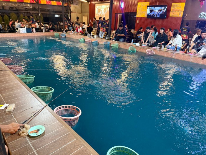 まさかお店の中に釣り堀があるとは。エクストリームすぎるぜ、バンコク。酔っ払いつつ感動しているとふと思った……もしかしたらこれって……まさか……まさか?