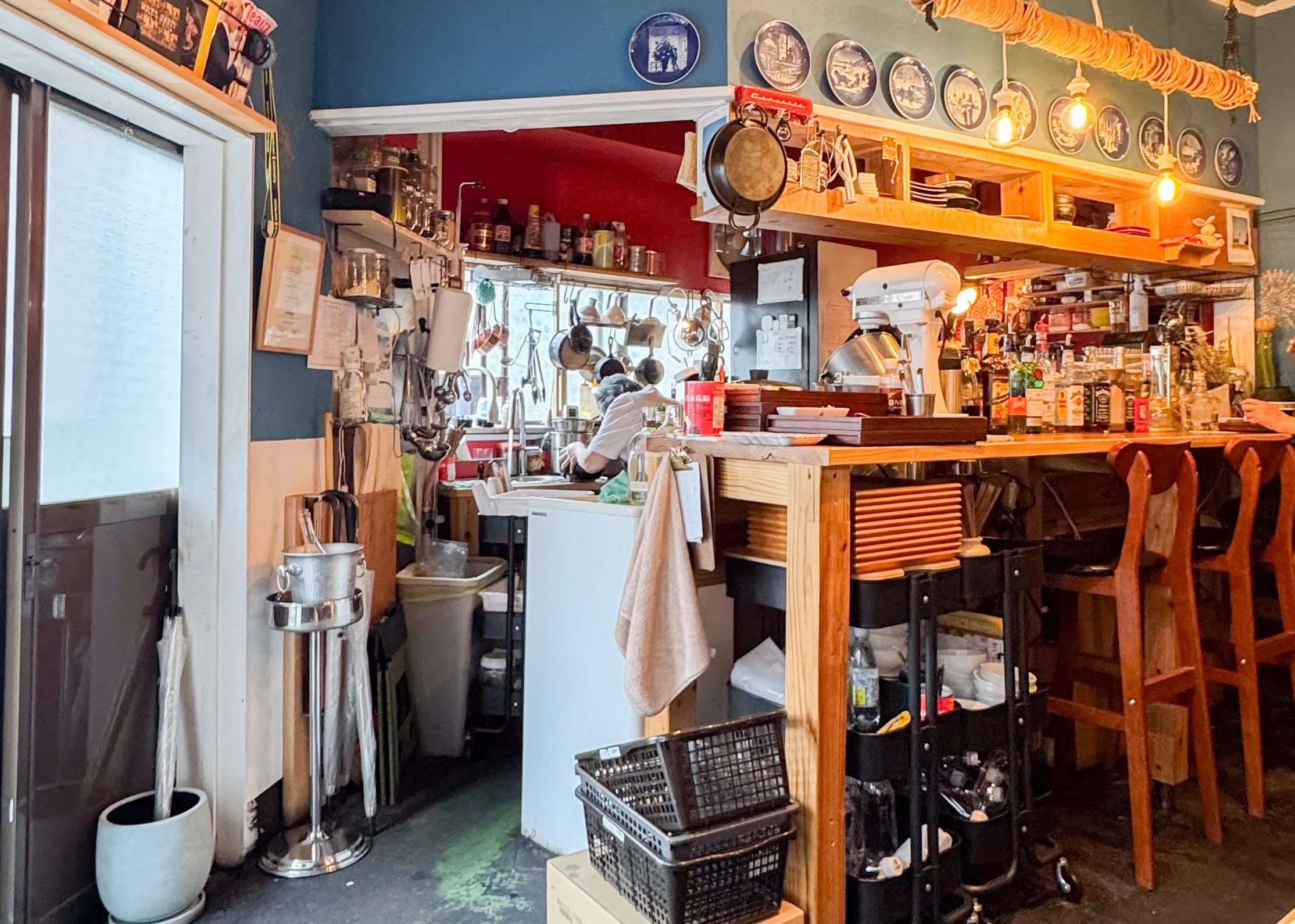 店内に入ると、2名がけのテーブル席が数席と、2〜3人ほどが座れるカウンター席があり、まさにコンパクトな食堂といった雰囲気。