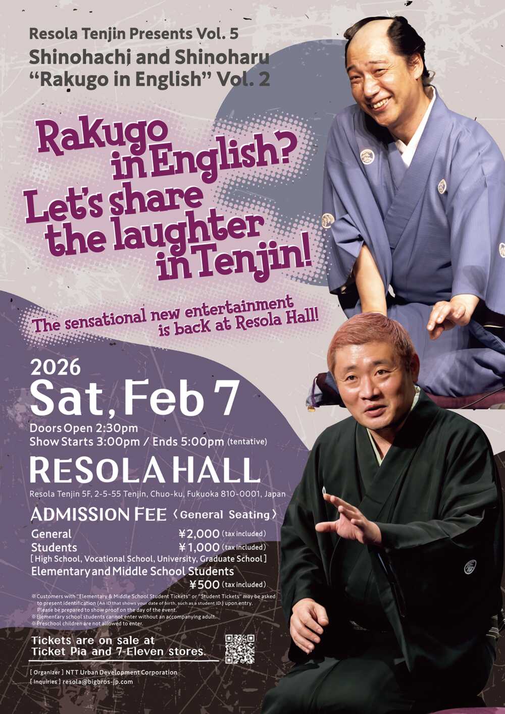 英語で落語?天神で笑おう! 新感覚エンターテイメント 再びレソラホールに!! レソラ天神プレゼンツ第5弾 『立川志の八、志の春の”イングリッシュde落語”vol.2』