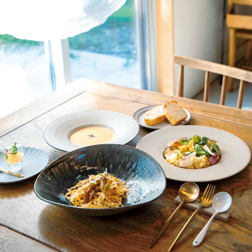 前菜からパスタまで4品で構成された「ショートコース」(2980円)。調味料もできる限り自家製にこだわった一皿は、美しい盛り付けにもうっとり♥