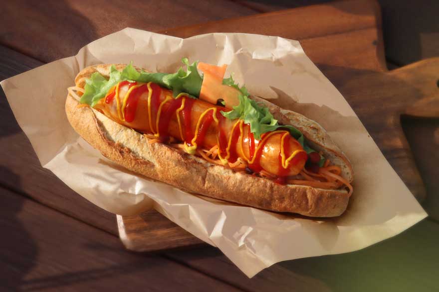 「うまっしゅホットドッグ」は、北海道産の小麦とマッシュルームを練り込んだドッグパンが特徴です。