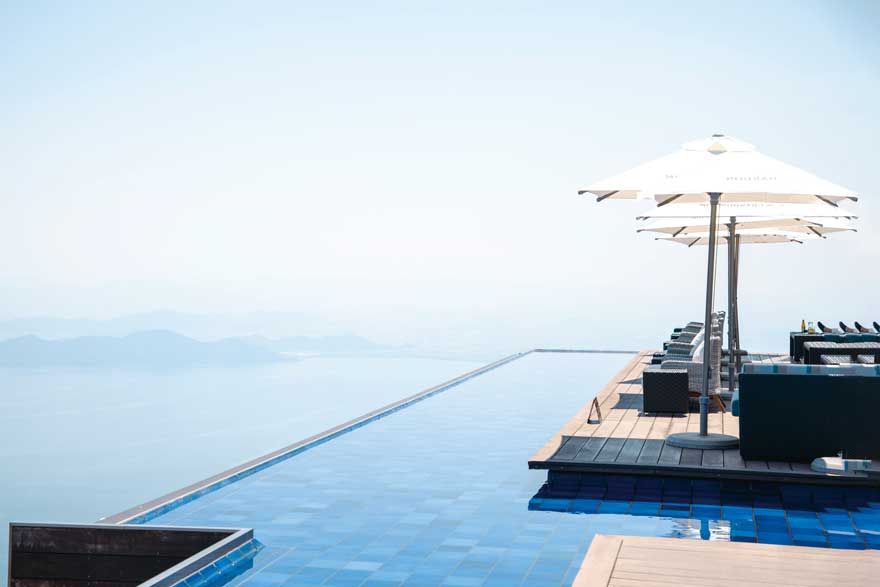 「THE MAIN」は、「グランド テラス」と「ノース テラス」から成り、まるで湖とテラスの水平線が一体化したような眺望が広がります。「グランド テラス」ではテラスの先に立って写真撮影を。まるで空中を散歩しているかのような幻想的な写真が撮れます。絶景を狙うなら午前中がおすすめです。