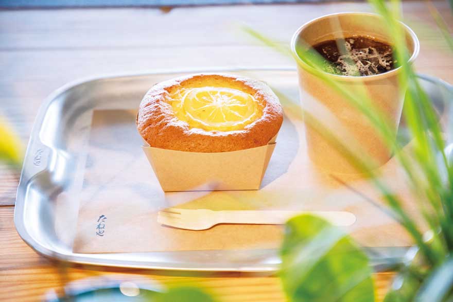 「焼きたてたねやカステラ瀬戸内レモン」(825円※季節ごとに限定フレーバーを販売)、「アイスコーヒー」(605円)