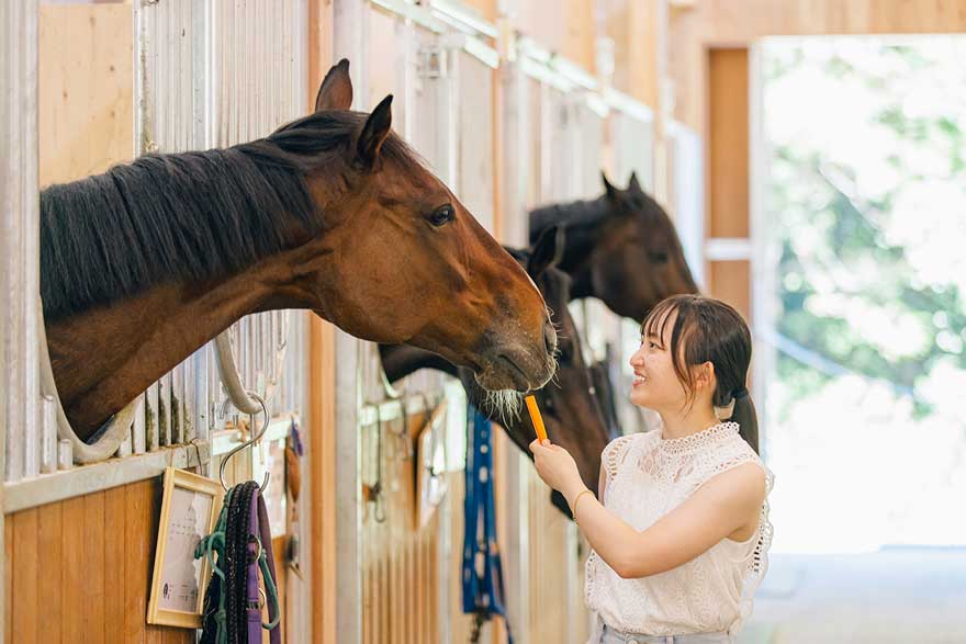 「気軽に馬とであえる場所」をコンセプトに、引退競走馬やポニーと触れ合える観光養老牧場がオープン!乗馬やエサやりなどの体験を中心としたコンテンツを用意しています。美しいメタセコイア並木道を馬車で進む「並木馬車」も実施。