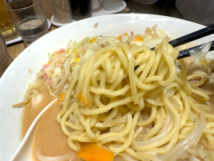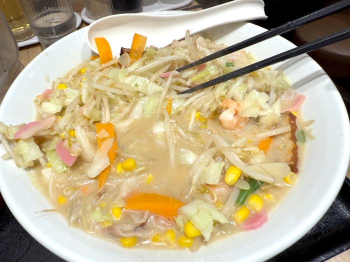 しばしして目の前に現れた『野菜たっぷりちゃんぽんMAX』は、当然ながらデカい。めっちゃウマそう! というわけで、ガツガツと食べ進めていったのだが……