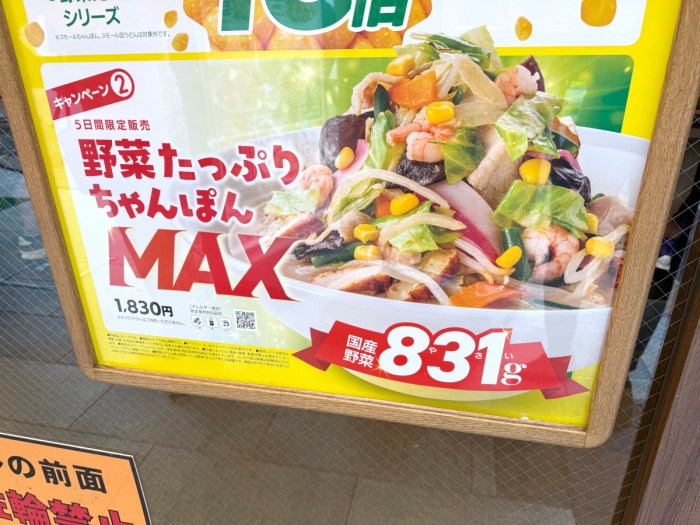 そのリンガーハットが2025年8月31日まで『野菜たっぷりちゃんぽんMAX』を発売中だ。普段から野菜たっぷりちゃんぽんはメッチャ食べてる! 野菜たっぷりちゃんぽん大好き!! というわけでリンガーハットに足を運んだ……のだが。