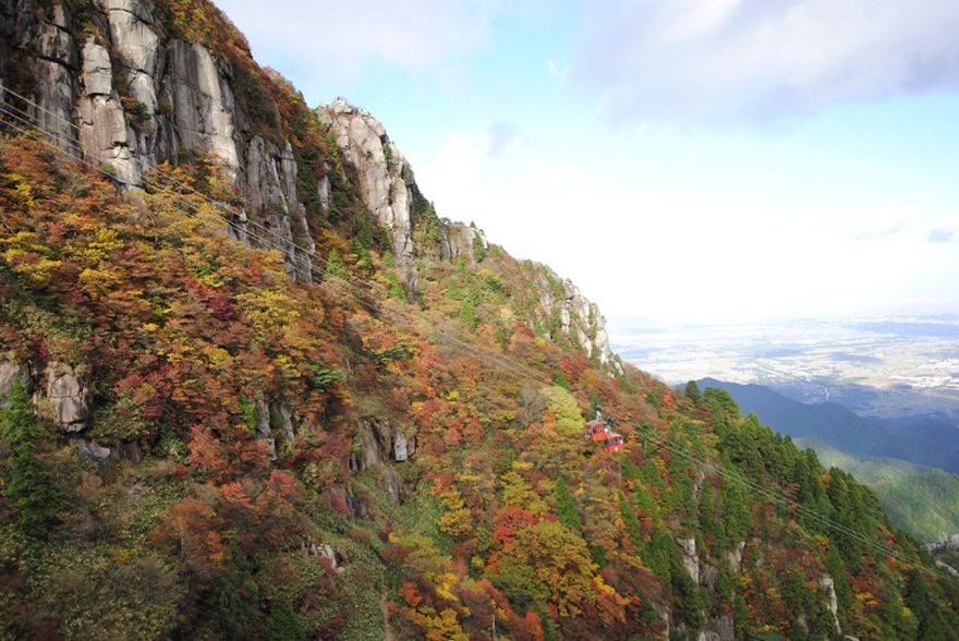 御在所岳では、10月中旬ごろに山上から色づき始め、11月下旬にかけて湯の山温泉街へと紅葉前線が下りていきます。