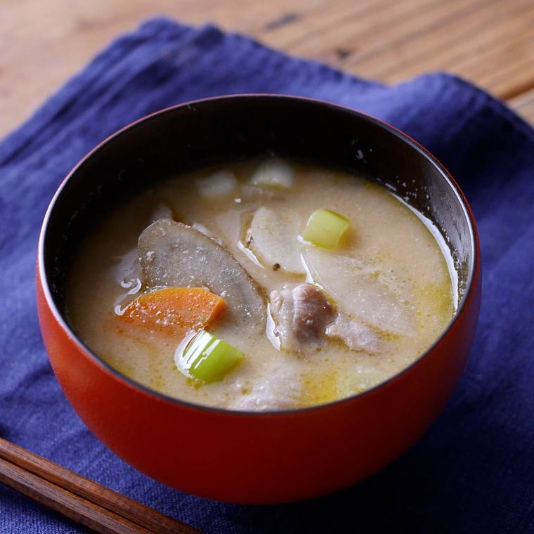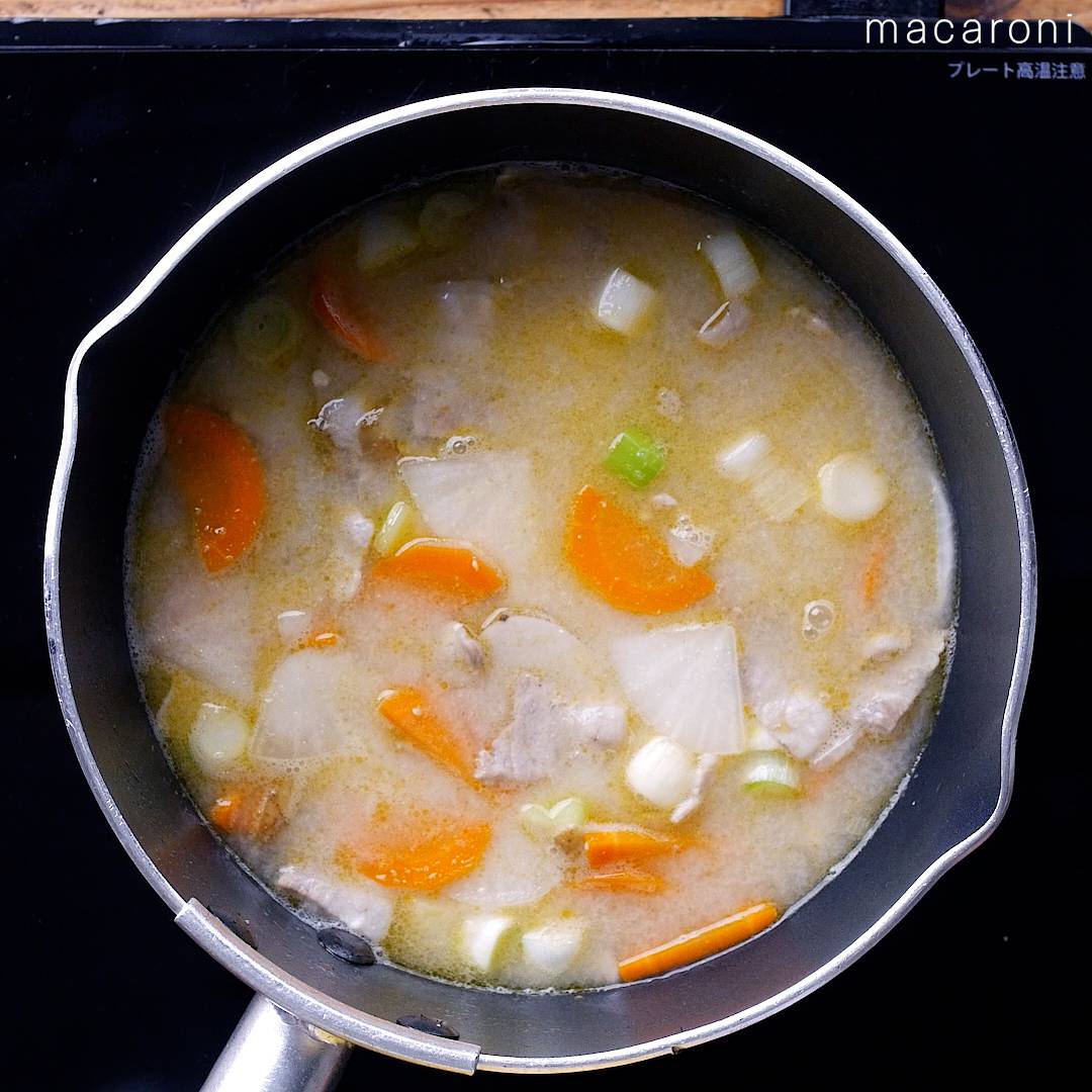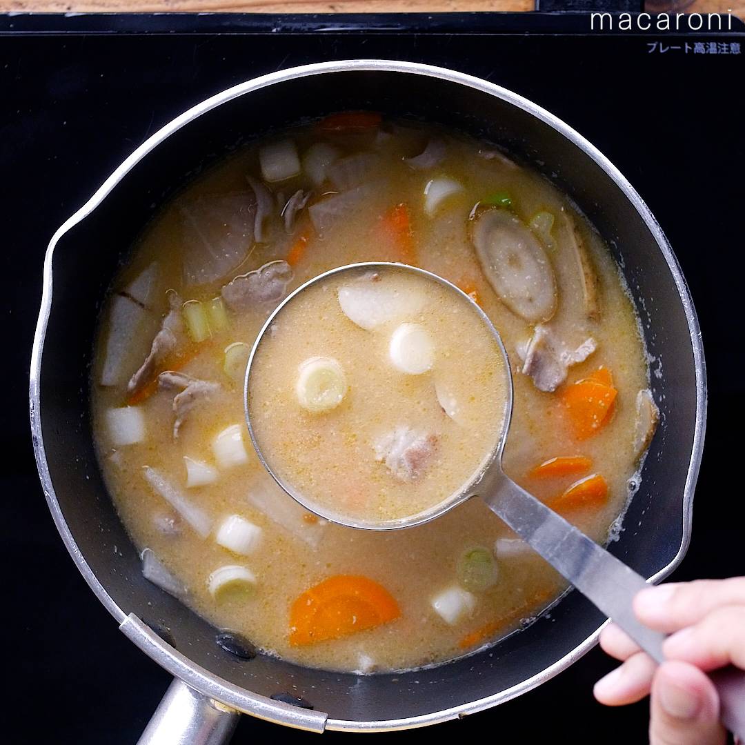 6: みそを溶き入れ、混ぜ合わせたら器に盛って完成です。