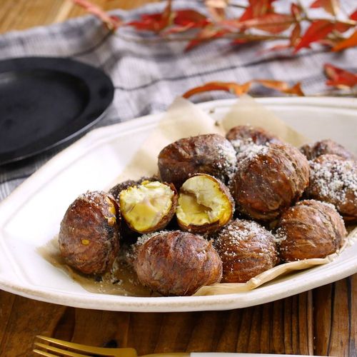 渋皮煮を作った際、渋皮がきれいにむけず傷がついてしまった栗はこの食べ方がおすすめです!揚げるだけでとってもおいしくなります。