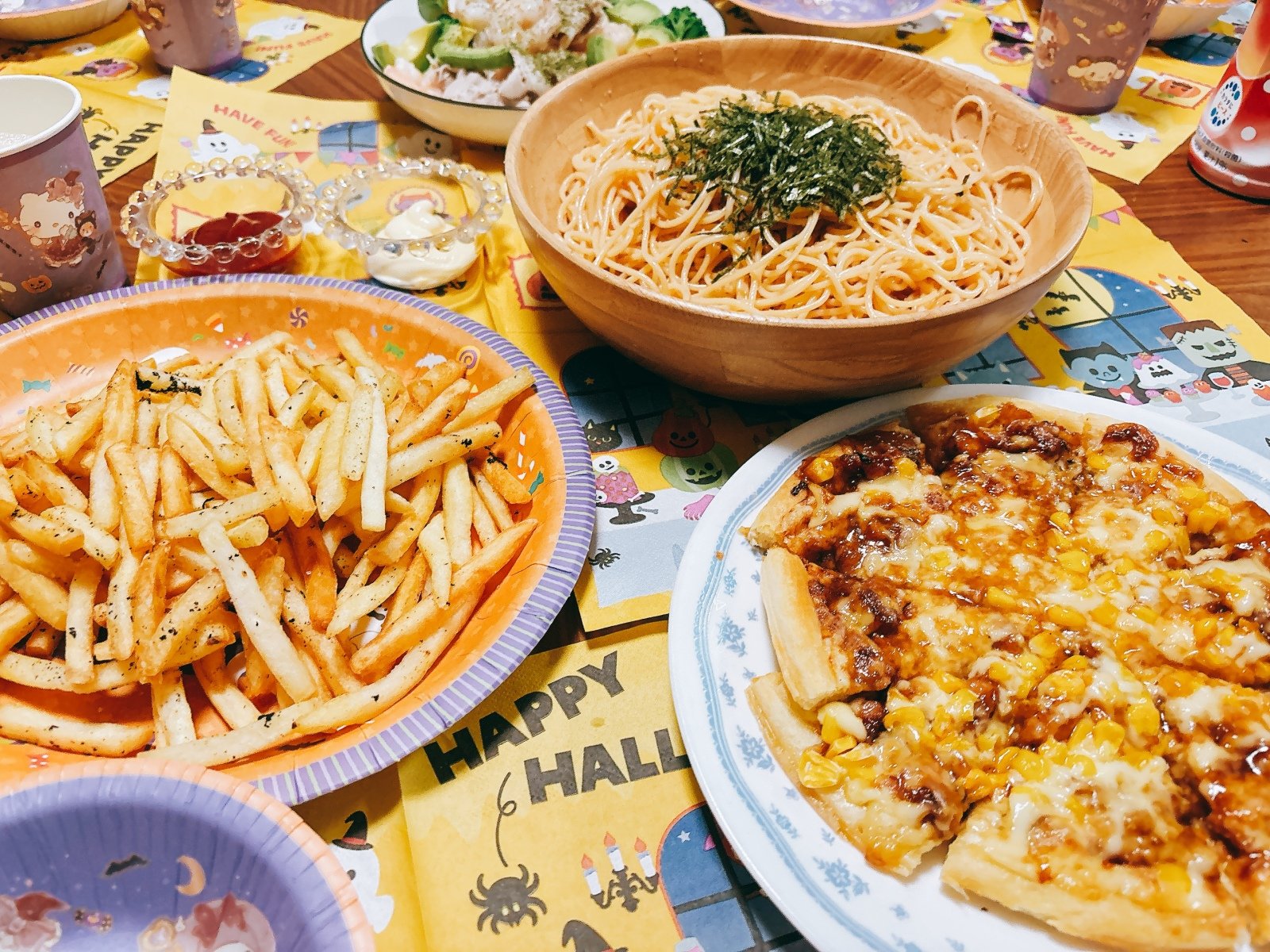 ハロウィンなどのイベントは、自炊で料理を用意します。100均の紙皿や使い捨てのカトラリーを使い、YouTubeでハロウィン風の音楽を流します。これだけで自宅がパーティー会場のような雰囲気になるのでおすすめです。