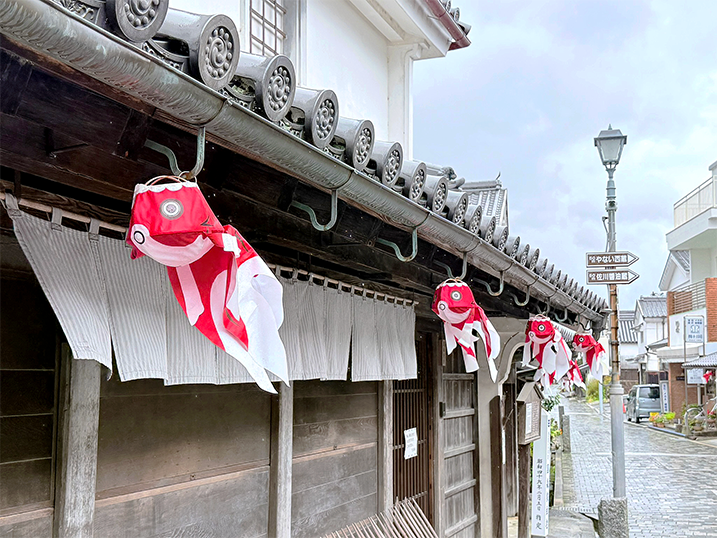 江戸時代には岩国藩の商業港として栄え、白壁の町並みや商家の建物が今も残る、情緒あふれる港町です。