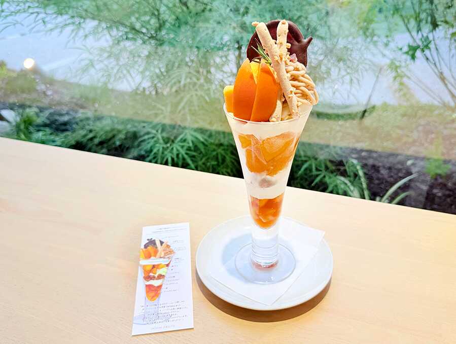 取材時にいただいたのは、秋限定の「12層の熟柿とマロンのパフェ」。