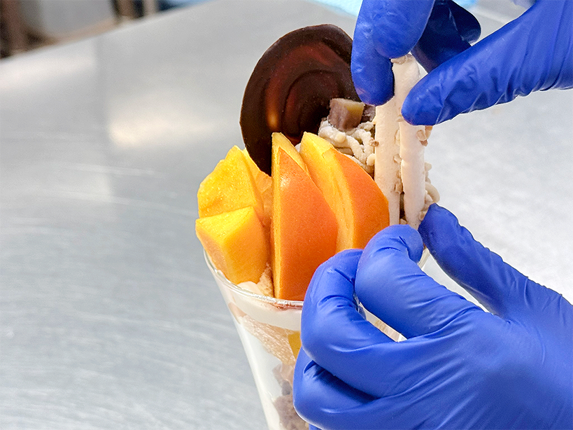 パフェに使われるパーツは基本手づくりで、その時々に使用するフルーツに合わせて味を微調整しているのだとか。さらに、季節や気候に応じてクリームの脂肪分まで調整するというこだわりようで、まさにフルーツを主役としたスイーツづくりが徹底されています。