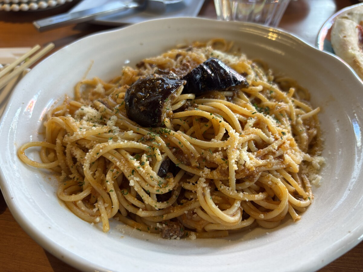 パスタは8種類の中から、筆者がパスタの中で一番好きなナスと挽肉のボロネーゼ1280円を注文。