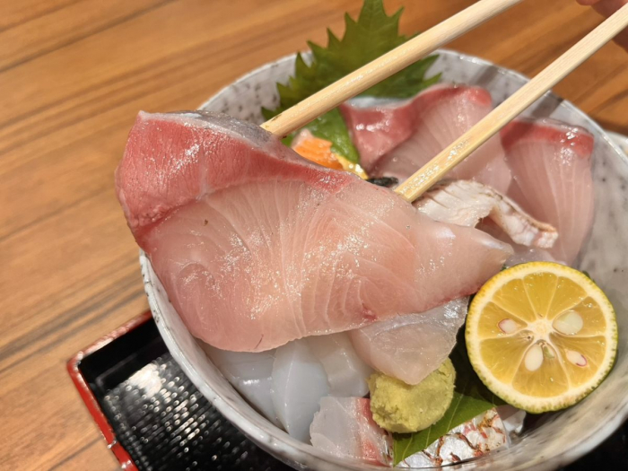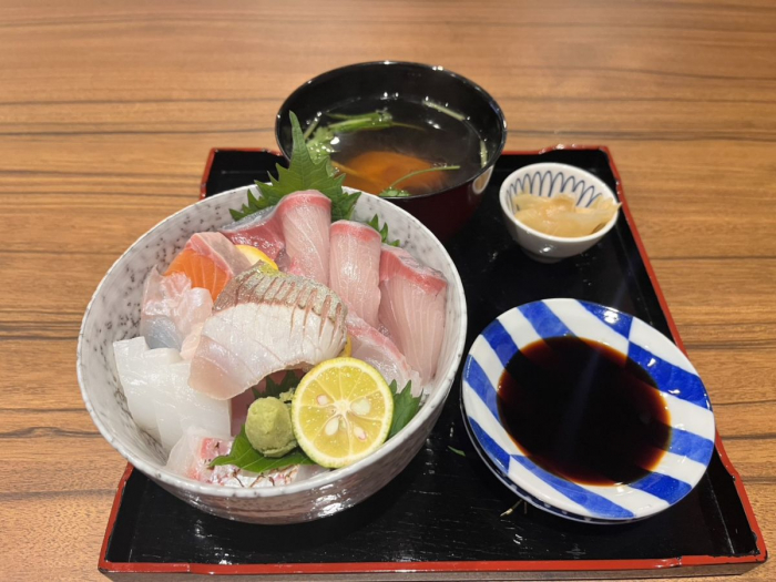 丼だけでなく、お吸い物にもぜひ注目したいところ。この日の「あら汁」には、タイとハマチのアラが入り、魚の旨みがしっかりと染み出していました。丼と一緒に味わうことで、満足度がさらに高まります。