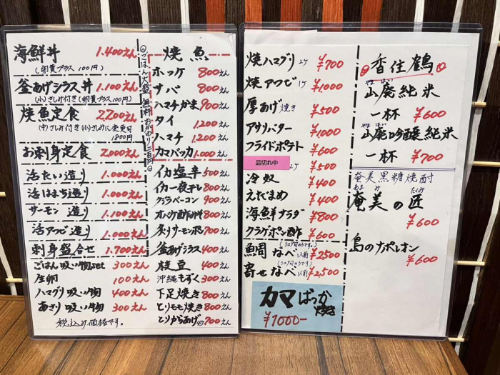 『魚まさ』の魅力は、なんといっても“海鮮をしっかり味わえる”ラインナップ。ランチもディナーもメニューは基本共通で、時間帯を問わず同じ内容を楽しめます。