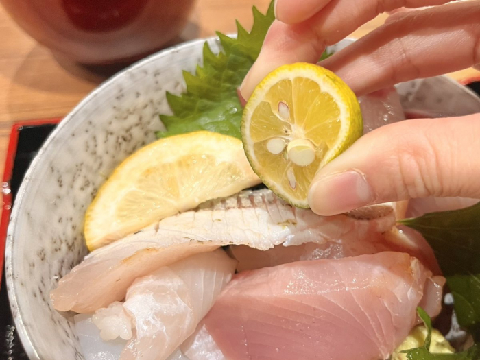 お好みですだちを絞ると、味わいが爽やかに変化。刺身の旨みが引き立ち、最後までさっぱりと楽しむことができました。