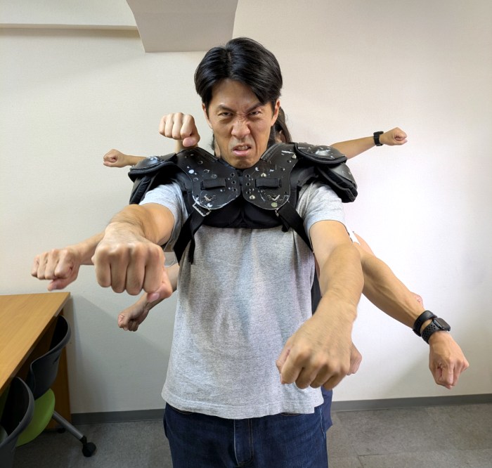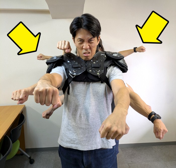 う~ん、縦に整列だと難しいなあ。後ろのパンチは絶対相手に届かないだろ。衆生を救う気のないダメな観音様みたいになってるぞ。