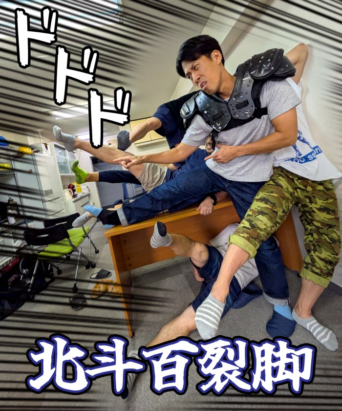 佐藤「いいぞ、みんな! 素晴らしい! さすが編集部メンバーだ。実写で再現不可能と思えた、北斗百裂脚を見事に形にしてる! 素晴らしいぞ、お前たち~!!」
