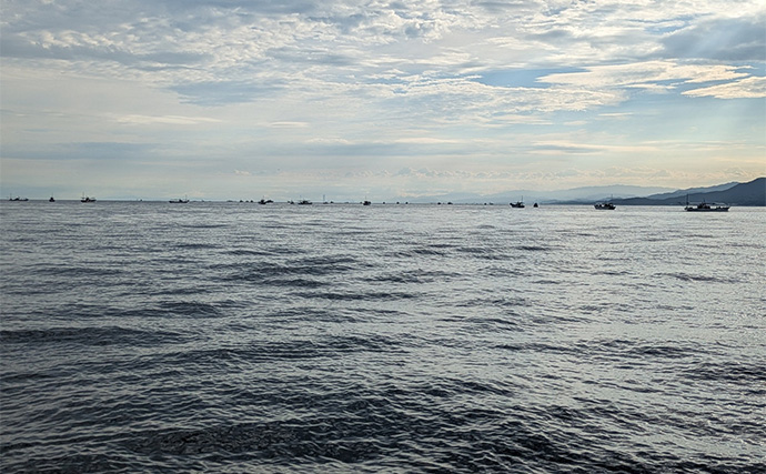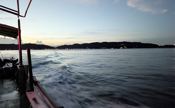 当日は、南風が強く他のエリアでは船止めが聞かれたが、なんの問題もなく出船できるとのこと。悪天候にも強いのが魅力だ。午前5時過ぎ、3人を乗せて河岸払い。釣座は予約順に好きな場所を選ぶので、私は残った左舷ミヨシに釣座をとった。残り物には何とやら……に期待!