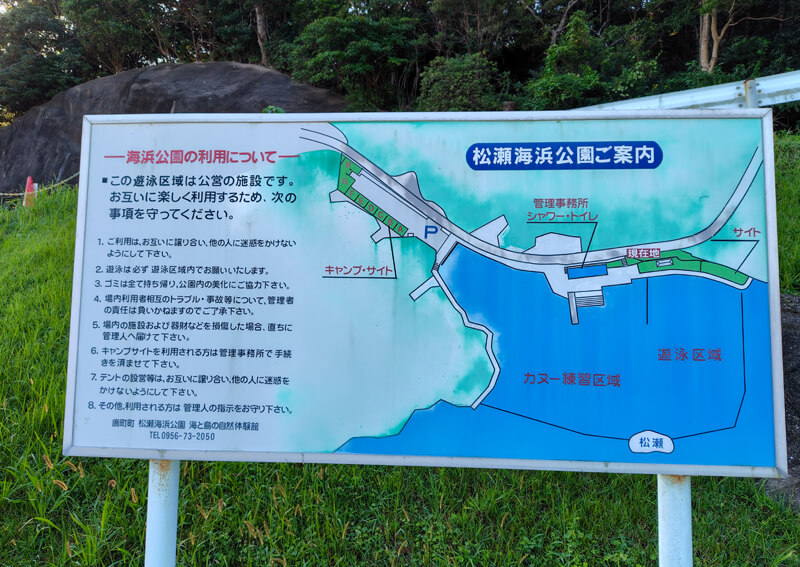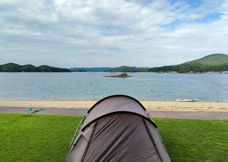 サイトの正面には小さな松瀬島が見えますキャンプ場での注意点