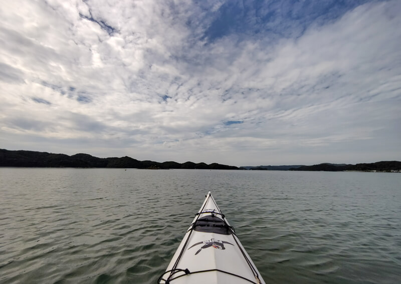 昼食を軽く済ませたあと、さっそくカヤックとパドル、救命胴衣を借りて、約2時間カヤックを漕ぎました。初心者というわけではありませんが経験はそれほど多くないため、バランスや漕ぎ方には少し注意しながら進みました。パドルを水に入れると前に進む感覚は新鮮で、海上で過ごす楽しさを存分に堪能しました。