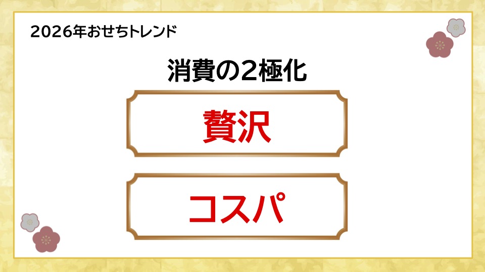 こうした状況下、おせち市場では消費の「二極化」が進んでいるという。原材料の早期確保などで価格を抑えた「コスパ重視」の商品が求められる一方で、正月くらいは豪華に過ごしたいという「贅沢志向」のニーズも根強い。各社はこの両極端なニーズにいかに応えるかが問われている。
