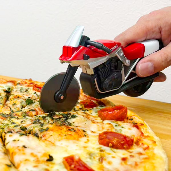 株式会社フェイスはSUZUKIの名車「GSX1100S KATANA」をモチーフとしたピザカッター「ピザカッターナ」の新色レッドを、Amazon内の「Click Car Products」にて、数量限定1000個で予約販売開始しました。同商品はスズキ公式ライセンス取得商品です。